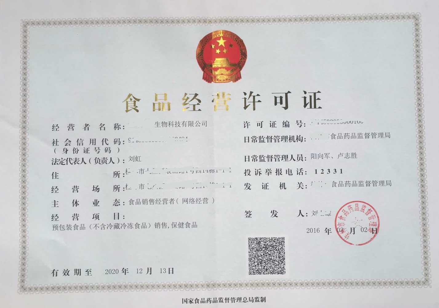 您如果是食品銷售企業(yè)或者經(jīng)銷商,需要辦理食品經(jīng)營許可證,原來稱之為食品流通許可證,您因為沒有廠房,也無法辦理食品生產(chǎn)許可證。